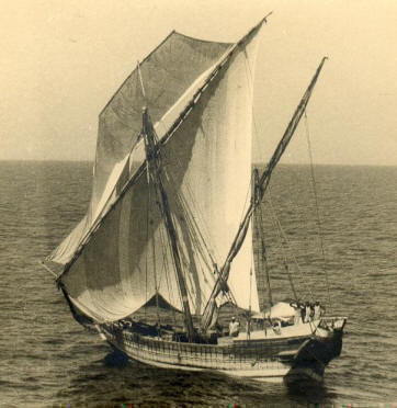 Des premiers aperçus aux derniers, ceux qu'on voit du côté de Chittagong au Bangla Desh ou aux îles Annabas, et tout au sud à Zanzibar, ils ont tous en commun un même type de propulsion. Les variantes de coques et de gréement n'ôtent rien à cette confraternité.