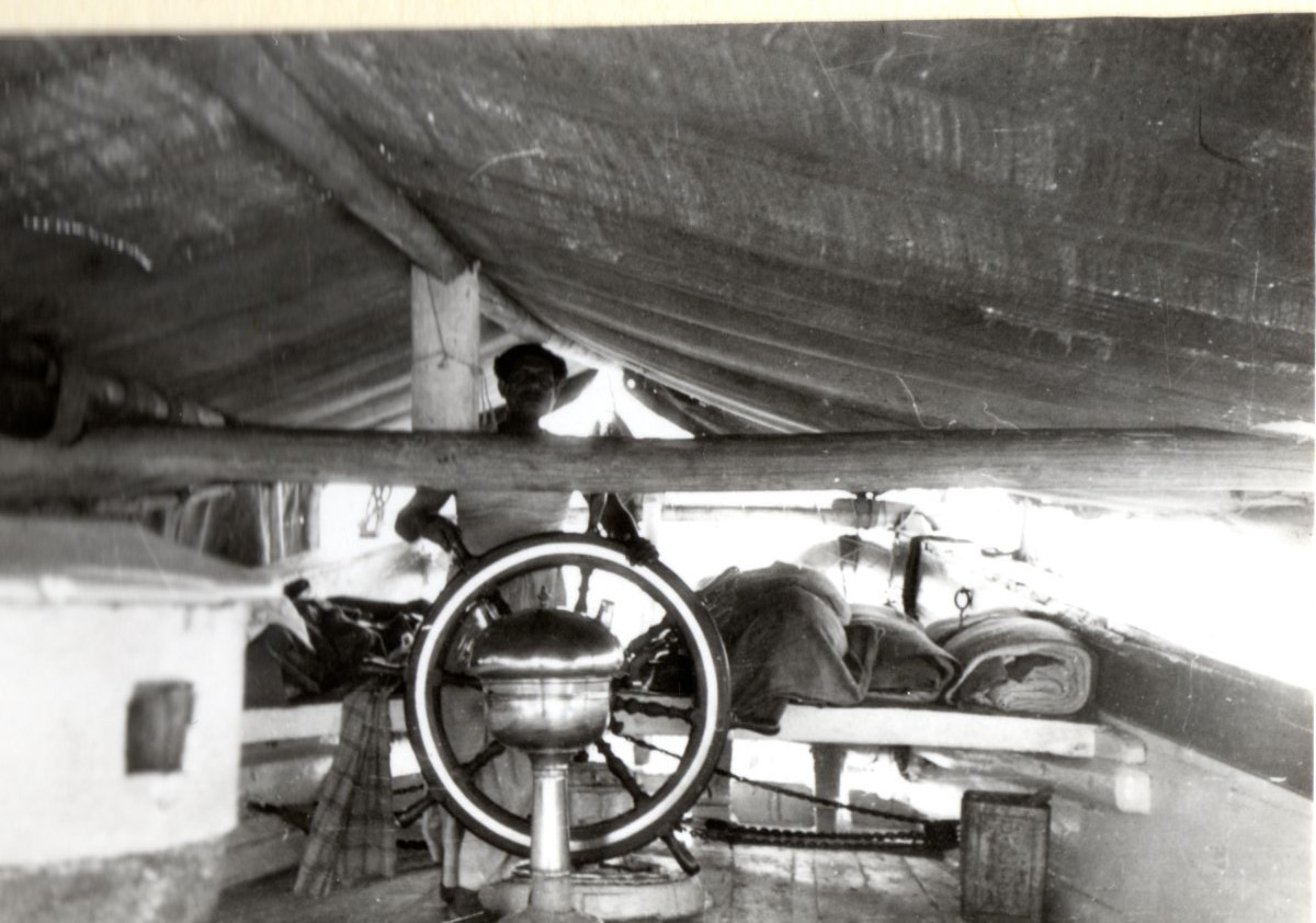 Les quatre sabords décorés ouvrent sur un assez vaste entrepont sur lequel donnent deux minuscules cabines On ne peut s'y tenir debout. La richesse de la décoration florale sculptée aux Indes était assez commune. Photo HM Fort Jésus septembre 1955.