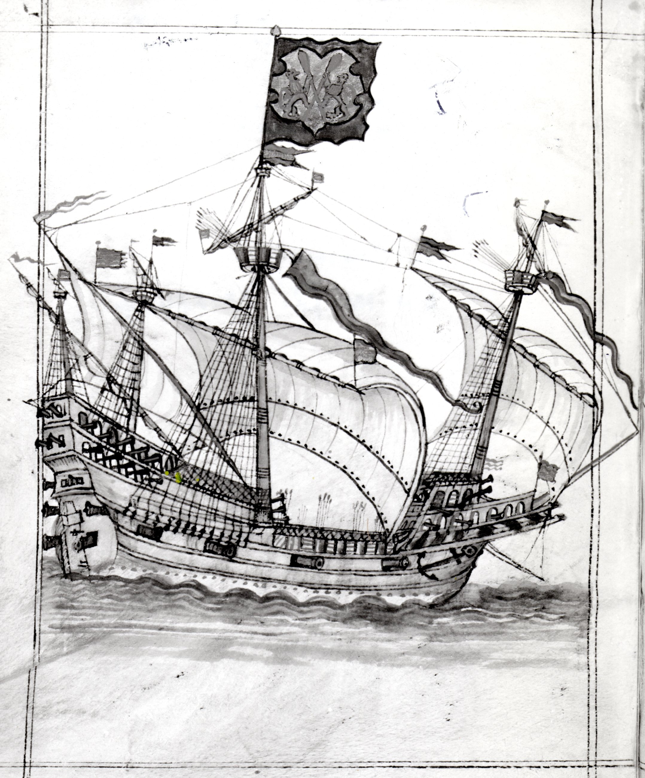 Dessin de galion dans G. Brouscon du Conquet B.N. ms Ffr. 25374