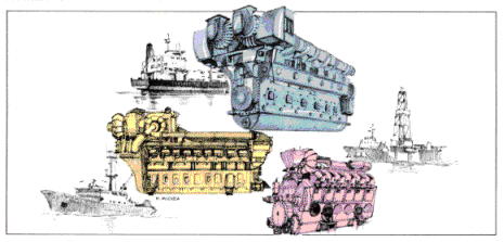 AlthomAtlantique, moteurs Pielstick, dessin aquarellé sur papier,