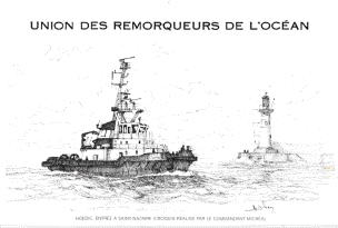 A greeting card for Althom Atlantique, Ship and motor