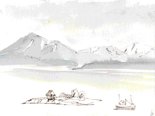 Aalesund, paysage de Norvège, dessin aquarellé (1990)