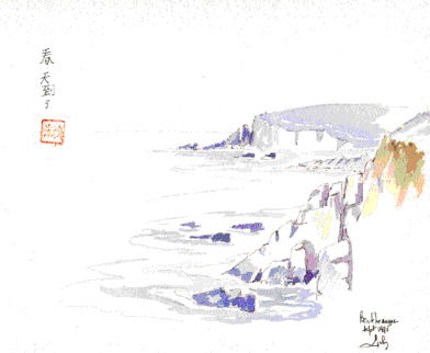 Embouchure du Yang Tse, encre de Chine sur papier à grain, (1968)