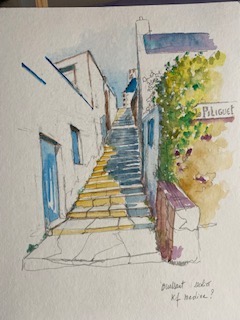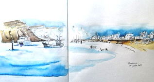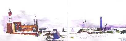 Aquarelle Bertheaume, Finistère, dessin aquaarellé, (1999),