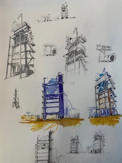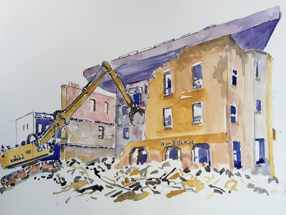 Démolition artielle de l'hôtel Sainte-Barbe, avant reconstruction. aquarelle (2016)