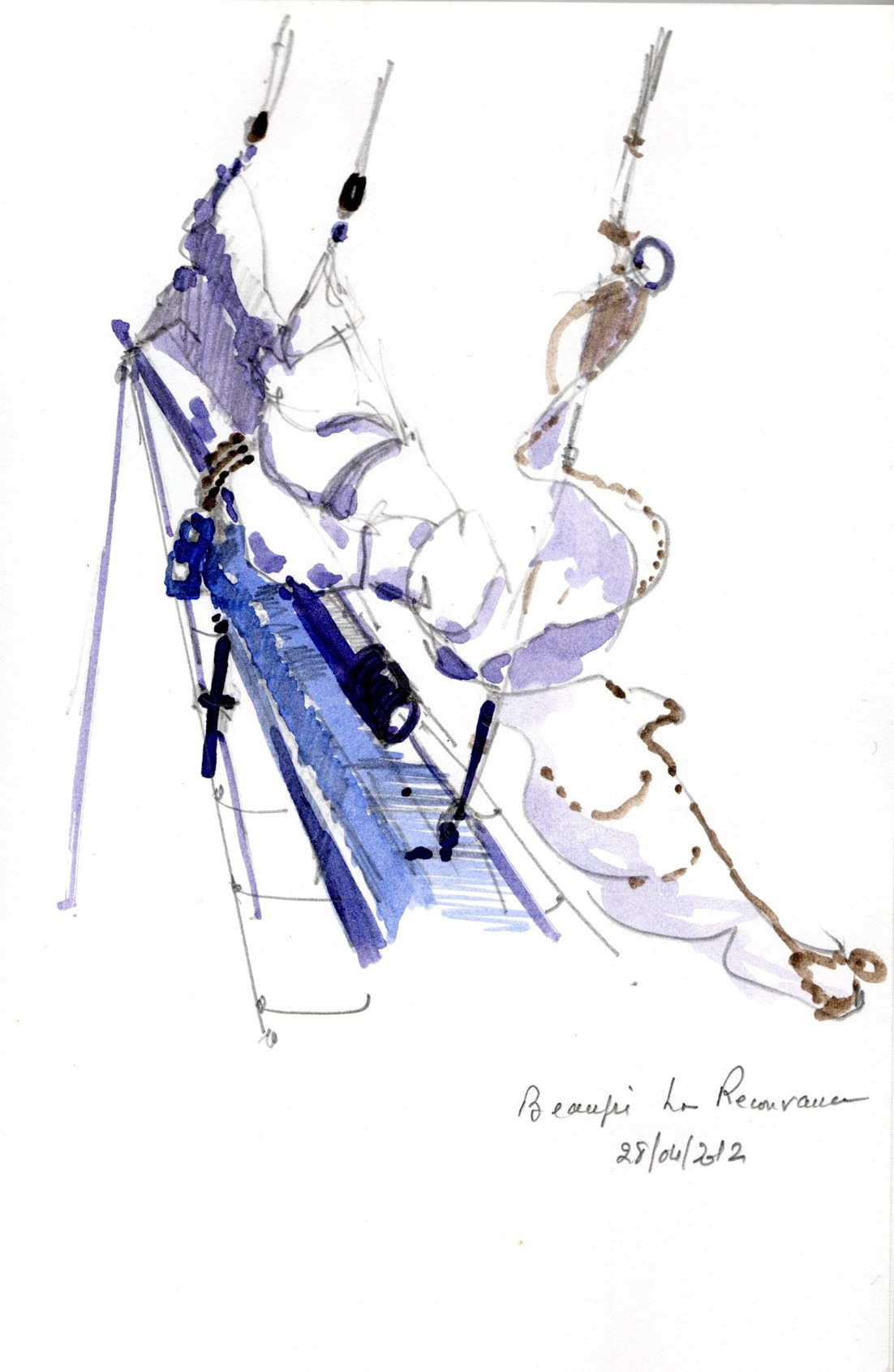 Au travail à bord de la goélette la Recouvrance, mai 2012.